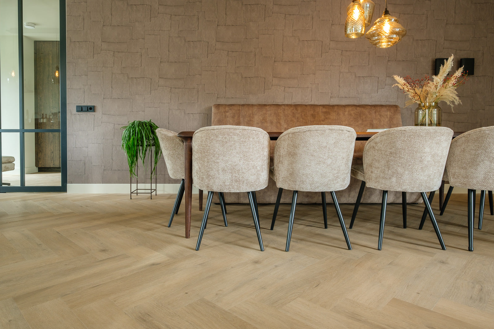 De visgraat planken uit de Belakos pvc-collectie zijn ideaal voor zowel moderne als klassieke interieurs. Het visgraatpatroon benadrukt een elegante en authentieke uitstraling. De Belakos pvc-vloeren zijn geschikt voor zowel woninginrichting als projectinrichting.