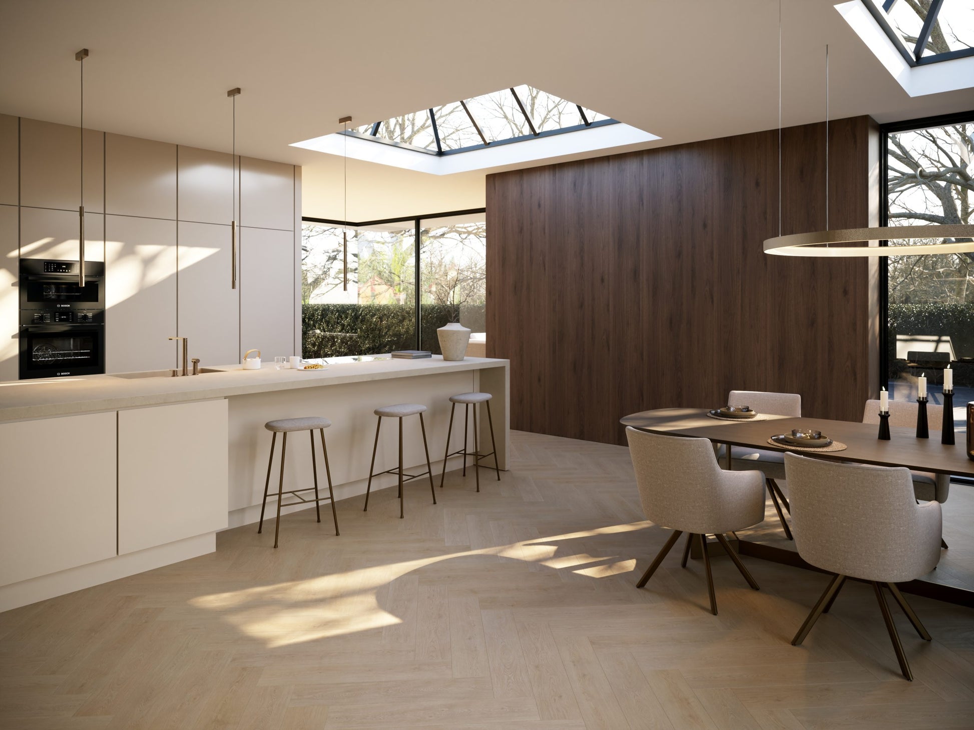 Ontdek met de Belakos roomvisualisatie tool hoe deze vloer, én deze kleur, in jouw ruimte staat en vraag gratis stalen op.